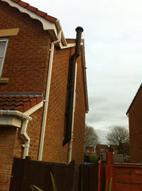 Picture 3 shows the black Twin Wall flue erected up the side elevation of the property with an anti downdraught cowl on top